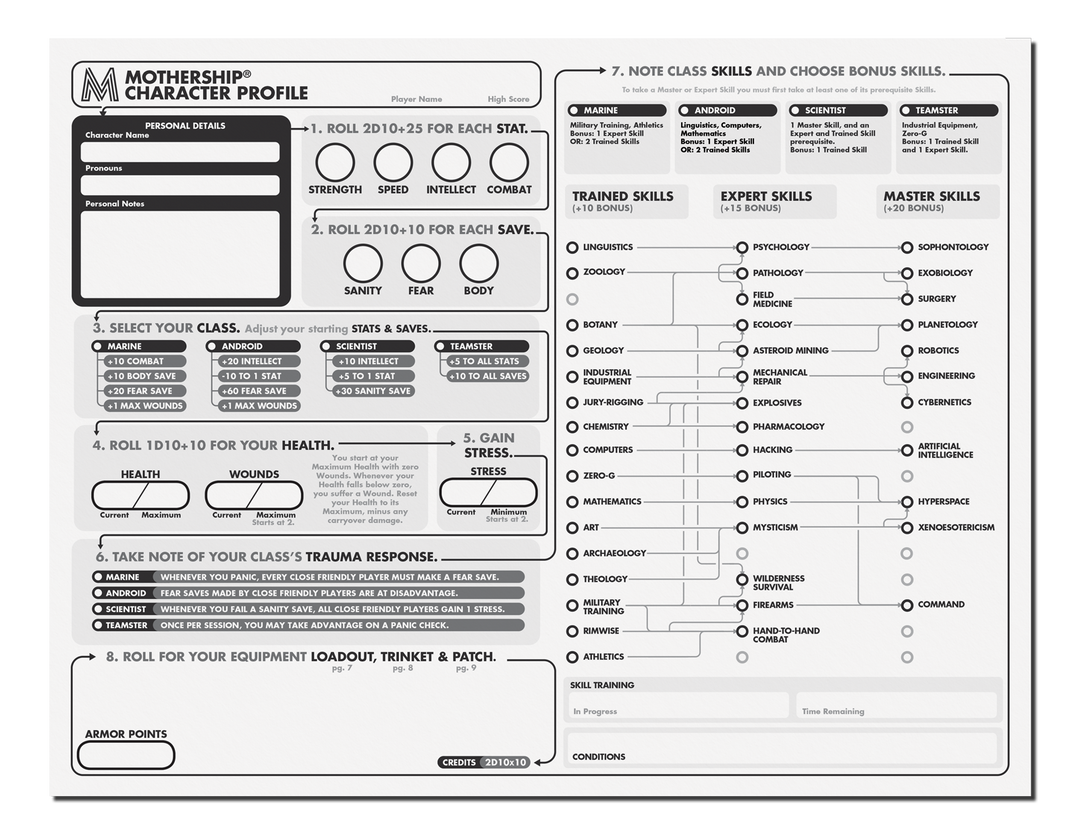 Welcome to Mothership®, the award-winning sci-fi horror RPG where you and your crew try to survive in the most inhospitable environment in the universe: outer space!