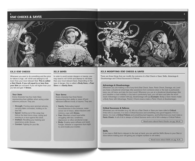 The Player's Survival Guide has all the rules you need to play, including Character Creation, How to Play, Violent Encounters, Stress & Panic, Shore Leave, Weapons and Equipment, and more! Everything has been streamlined with an eye to being fast and easy for new players to learn.